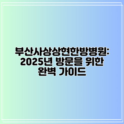 부산사상상현한방병원: 2025년 방문을 위한 완벽 가이드