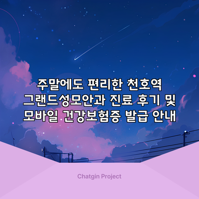 눈 건강, 놓치지 않으셨나요? 특히 바쁜 일상 속에서 주말까지 바쁘게 움직이기란 쉬운 일이 아니죠. 오늘은 주말에도 진료를 제공하는 천호역 그랜드성모안과에 대한 생생한 후기와 함께, 모바일 건강보험증 발급 방법까지 자세히 알려드릴게요. ✅ 수면 무호흡증의 증상과 치료 방법을 알아보세요. 👉 수면 무호흡증 치료 방법 확인하기 천호역 그랜드성모안과 소개 천호역 그랜드성모안과는 바쁜 직장인과 학생들을 위해 주말에도 편리하게 진료를 … Read more